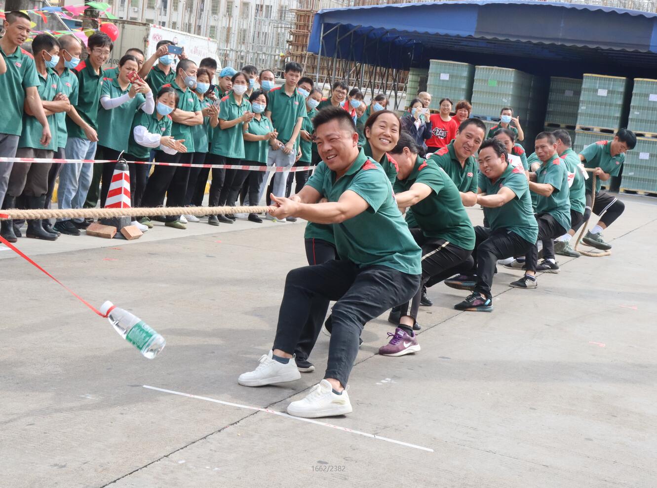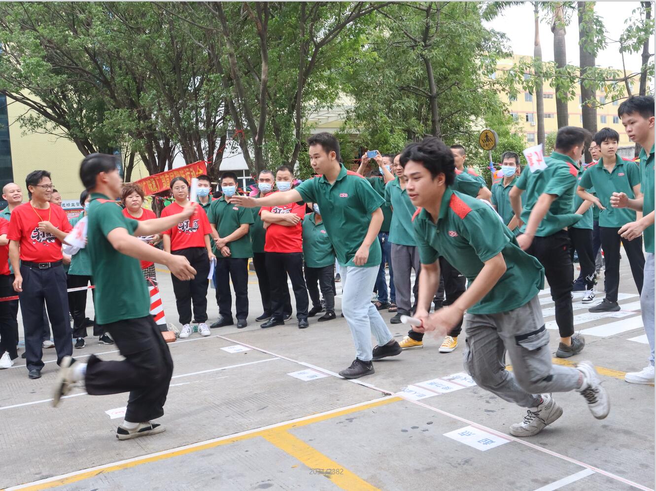 此次運動會比賽項目分為團體賽,有“4*100米接力賽”、“ 巨人腳步”、“ 縱橫天下”、“ 風火輪”和“ 拔河比賽”,由各部門、生產(chǎn)車間員工報名參加。本次運動會秉承團結(jié)、和諧、拼搏的宗旨,在緊張而有序的氛圍中開展。運動員們矯健有力的身姿,充分展現(xiàn)出廣味源人的團結(jié)一致、協(xié)作配合的和諧狀態(tài)。同時,具有廣味源人特色的企業(yè)文化更是體現(xiàn)得淋漓盡致。各隊運動員反應(yīng)敏捷、動作迅速、配合默契,拉拉隊各顯神通,整齊的吶喊為本隊的運動健兒們加油助威,現(xiàn)場的歡呼聲一浪高過一浪。特別在拔河比賽中,幾乎所有員工都沖到比賽場地,為運動員們吶喊加油。