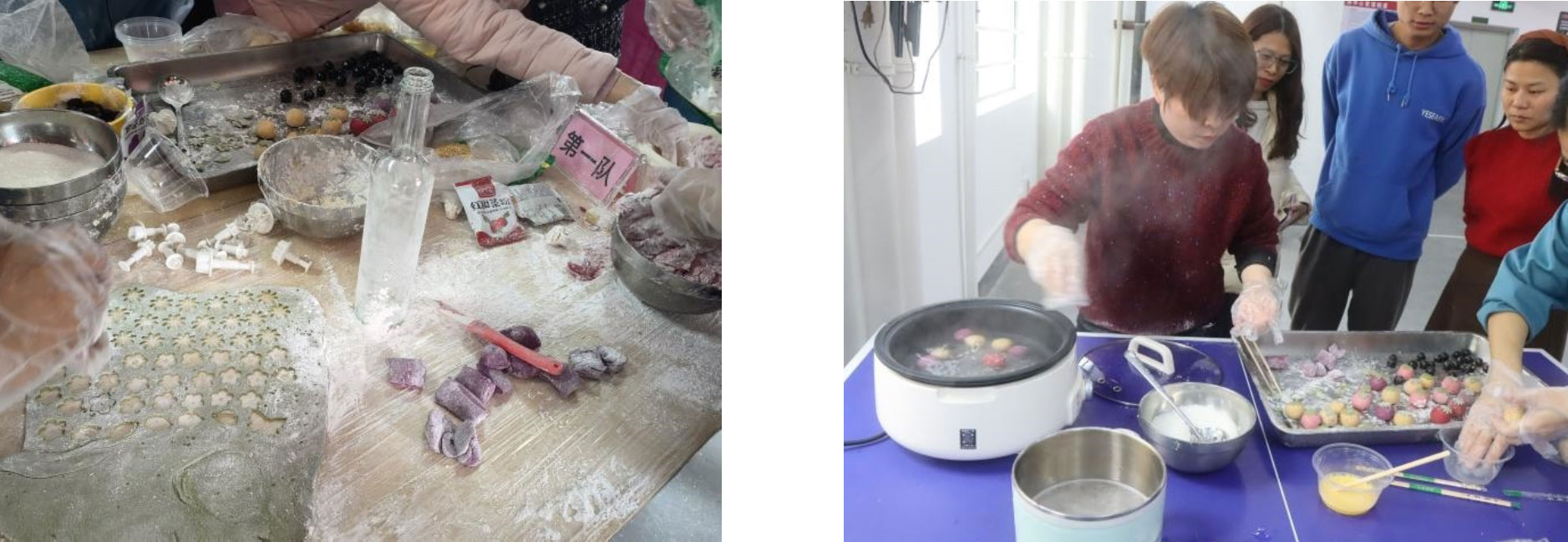 隨后主持人介紹出席活動的評委及詳細介活動的規(guī)則。接著各小組成員迫不及待想地投入到熱烈的DIY湯圓制作比賽中,每個參賽小組成員都各司其職,有的煮開水,有的搓粉,有的倒水,有的搓餡料,有的煮湯圓,場面熱鬧非凡,隊員們忙得不亦樂乎,湯圓制作比賽不僅是一場比賽,更是一場團聚和交流,隊員們在比賽的過程中,相互學習、分享經(jīng)驗和技巧,其樂融融、笑聲不斷。