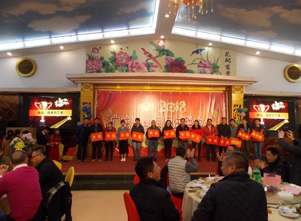 晚會上,我司領(lǐng)導(dǎo)對2017年度優(yōu)秀員工提名、優(yōu)秀員工、優(yōu)秀基層管理人員進(jìn)行頒獎(jiǎng),表彰了第五、十年長期服務(wù)愛崗敬業(yè)的員工。席間,表演、抽獎(jiǎng)貫穿整個(gè)晚會,表演中間還穿插了抽獎(jiǎng)環(huán)節(jié),隨著三等獎(jiǎng)、二等獎(jiǎng)、一等獎(jiǎng)、特等獎(jiǎng)、幸運(yùn)獎(jiǎng)、現(xiàn)金獎(jiǎng)的抽取,不斷掀起年會的高潮。禮品非常豐富,領(lǐng)導(dǎo)與員工互動(dòng)、激動(dòng)人心的抽獎(jiǎng)活動(dòng),讓歌聲、掌聲、歡呼聲一直在會場上蕩漾。晚宴不僅給大家?guī)砹藲g聲笑語,同時(shí)也讓同事之間彼此的心更加貼近。
