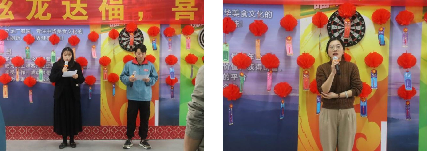 在統(tǒng)計小組分數(shù)期間,各參賽小組進行龍年繞口令比賽,每個小組派一名成員讀繞口令,看看哪組成員又快又準。
