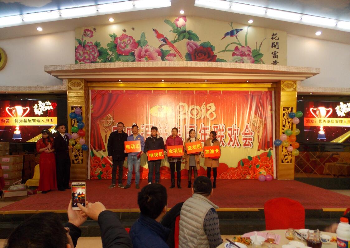 晚會上,我司領(lǐng)導(dǎo)對2017年度優(yōu)秀員工提名、優(yōu)秀員工、優(yōu)秀基層管理人員進(jìn)行頒獎(jiǎng),表彰了第五、十年長期服務(wù)愛崗敬業(yè)的員工。席間,表演、抽獎(jiǎng)貫穿整個(gè)晚會,表演中間還穿插了抽獎(jiǎng)環(huán)節(jié),隨著三等獎(jiǎng)、二等獎(jiǎng)、一等獎(jiǎng)、特等獎(jiǎng)、幸運(yùn)獎(jiǎng)、現(xiàn)金獎(jiǎng)的抽取,不斷掀起年會的高潮。禮品非常豐富,領(lǐng)導(dǎo)與員工互動(dòng)、激動(dòng)人心的抽獎(jiǎng)活動(dòng),讓歌聲、掌聲、歡呼聲一直在會場上蕩漾。晚宴不僅給大家?guī)砹藲g聲笑語,同時(shí)也讓同事之間彼此的心更加貼近。
