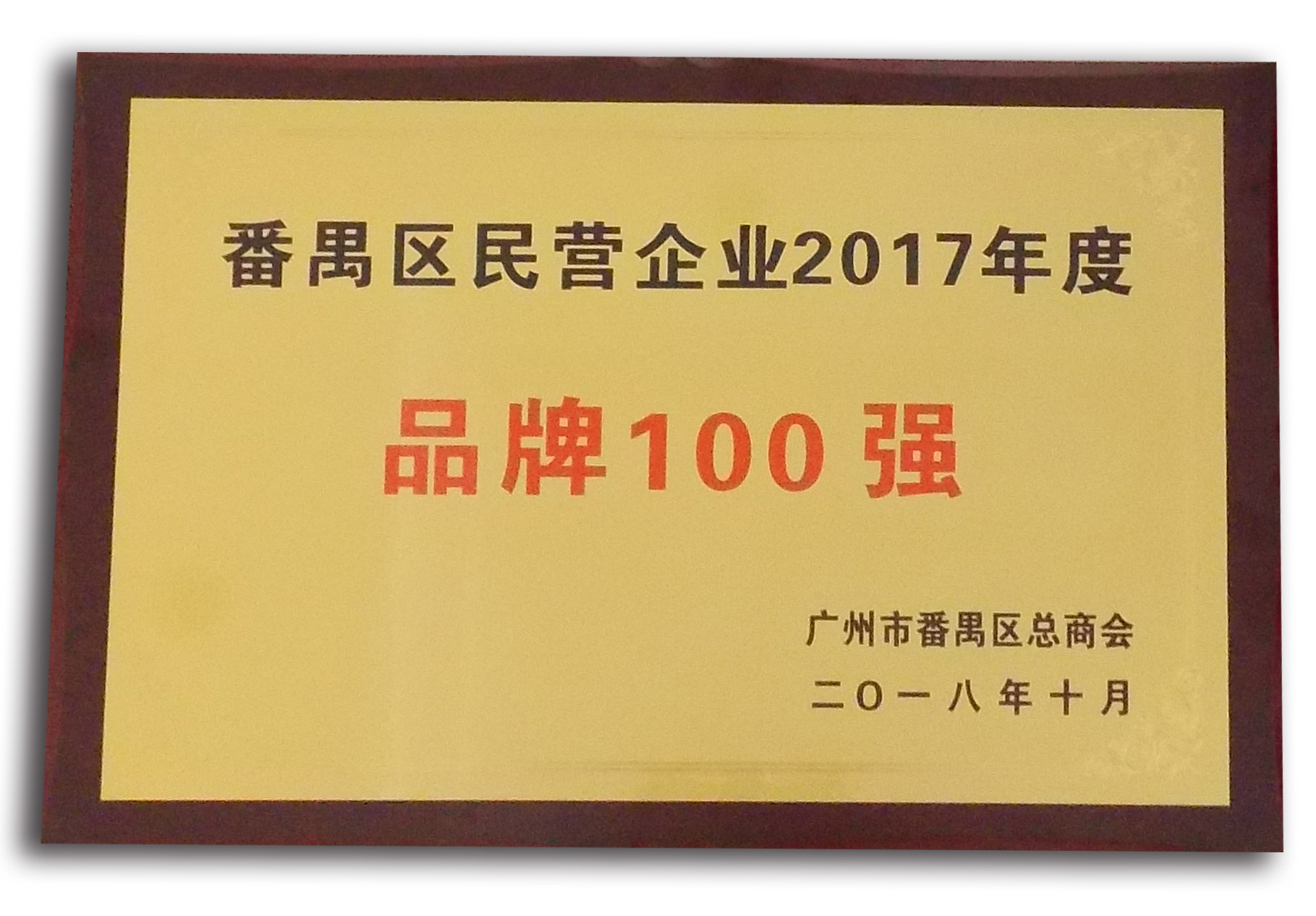 我司評(píng)為番禺區(qū)2017年度品牌100強(qiáng)